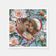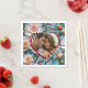 Personalisierte Cocktail-Servietten für einen Hochzeitsempfang oder ein Probe-Dinner mit den Initialen von Braut und Bräutigam, Hochzeitstag und Foto. . Eine wunderschöne Illustration, die ein Mosaik aus Buntglas und Fliesen aus Korallenbänken mit blauen und anderen farbenfrohen Akzenten nachahmt.