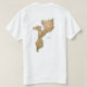 Die Vorderseite dieses T - Shirt trägt eine kleine mosambikanische Fahne mit ihrem bekannten Motiv in einem roten Dreieck mit grünen, schwarzen und gelben Bändern rechts, während auf der Rückseite eine Reliefkarte von Mosambik zu sehen ist. Erhältlich auf T - Shirt, Sweatshirts, Polos, Langärmeln und vieles mehr.