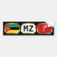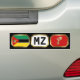 Autoaufkleber mit einer attraktiven Kombination aus mosambikanischer Flagge, Landkarte und 2 Buchstaben. Zeigen Sie anderen Straßenbenutzern Ihre Zuneigung für Mosambik mit diesem edlen, dauerhaften Vinyl-Autoaufkleber mit der Nationalflagge, ISO 3166-1 Alpha-2 Ländercode und der physischen Landkarte des Landes. © 2011 FlagAndMap