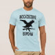 Shirt liest "Krähen von Moskau." Art einer Doppeltbedeutung als des Wortes für Krähe ist zum Wort für "Dieb" sehr nah (d.h. Gangster.) Folglich die Krähe, die ein AK hält!