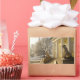 Moskau. Winter. Löwenskulptur. Rechteckiger Aufkleber