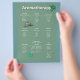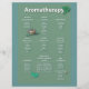 Ein einfaches aber schönes Moosgrün Diagramm mit allen möglichen Aromatherapiehinweisen aufgelistet. Es erzählt Ihnen, welche Aromen und ätherischen Öle für Schlaflosigkeit, Insektenstiche und Bisse, Depression und sechs andere zu verwenden. Enthält Basilikum, Zitrone, Bergamot, Teebaum, Zimt und vieles mehr. Wir bieten diese als Flyer-, Postkarten- und Grußkarte an, damit Sie sie an Ihre Kunden senden können, sowie als Poster in voller Größe.