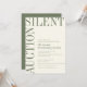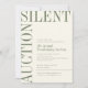 Klassische Typografie fühlt sich modern und frisch an, in einer einzigartigen und eindrucksvollen Gestaltung, die zu einer stillen Wohltätigkeit-Auktion mit einem Gefühl der Wärme im moosgrünen Text und dem warmen, weißen Hintergrund einlädt.