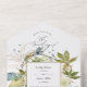 Moderne Wasserfarbe mit Linienelementen und einem abstrakten Look. Hübsche Naturfarben: Teich blau, Moosgrün, blasses Gold. Elegantes All-in-One ist gefüllt mit hübschen Farben und Kalligraphie Akzenten. Alle benötigten Informationen sind in einem einfachen Einladungsformat verfügbar. Anpassen der meisten Texte - Ändern der Schriftart-Auswahl oder der Farbeinstellungen.