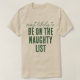 Get into the holiday spirit with this fun, spirited Christmas t-shirt design that features a playful quote "Most likely to be on the naughty list" in a casual, two-part font style. The distressed green lettering pops against the light background, creating a festive, vintage look that's perfect for family photos. The focus is on the bold statement, making it an instantly recognizable and witty addition to your matching holiday outfits!