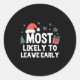 Most Likely To Leave Early Christmas Funny Xmas Runder Aufkleber