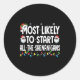 Most Likely To Start The Shenanigans Funny Family Runder Aufkleber