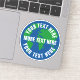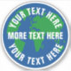 Mother Earth Blue Planet Custom Laptop Aufkleber. Aufkleber auf dem Planeten mit individuellem Text. Blaue und grüne Weltkarte mit weißer Textvorlage. Erstellen Sie Aufkleber für die globale Erwärmung, Klimawandel Umweltfragen, Naturschutz, grüne Energie, Waldschutz, Proteste, Plastiksuppe, recycle, recycle usw. Land und Meer zeichnend. Rettet den Planeten, rett die Erde!