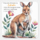 Eine Mutter Känguru steht aufrecht in einer natürlichen Umgebung, und ihr Baby guey guckt aus ihrem Beutel hervor. Das Baby Känguru ist klein und neugierig, sein Kopf nur sichtbar, während die Mutter erscheint schützend und ruhig. Umgeben von Grün verkörpern sie die nahe Verbindung zwischen Mutter und Kind im Tierreich. Die Szene fühlt sich friedlich und nährend an und fängt einen Moment der Verbindung in der Wildnis ein.