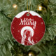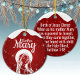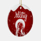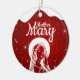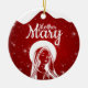Mother Mary, Religious Holiday Ceramic Ornament with berry red snow capturing the Christmas magic and joy of a Christian season. On the back, a shortened (to fit and stay uniform) sacred writing, Matthew 1:18 from the King James Version (KJV) states: "Birth of Jesus Christ: When as his mother Mary was espoused to Joseph, before they came together, she was found with child of the Holy Ghost" all in customizable text, ready for you create your favorite bible verse in festive devotional design hanging decorations. Order your Christ teachings testaments today and make your custom inspirational doctrine keepsakes extra special with divine passages of the word of our Lord! 🎄⛪️