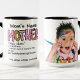 Unsere Mutter, Heilige, Superwoman Foto Tasse ist der perfekte Weg, um Ihrer Mutter etwas Liebe zu zeigen. Die farbenfrohe Grafik und Ihr persönliches Foto werden sie jedes Mal zum Lächeln bringen, wenn sie es benutzt. Außerdem ist es ein guter Weg, ihren Tag mit einer Erinnerung zu beginnen, wie sehr Sie sie schätzen. Laden Sie einfach ein Foto hoch und fügen Sie ihren Namen und die Namen der Kinder für ein Geschenk hinzu, das sie für immer schätzen wird. Sie können auch aus verschiedenen Größen der Tasse und verschiedenen Interieurs- und Grifffarben wählen, um ein wirklich personalisiertes Geschenk zu machen. Denken Sie daran, ihr auch den passenden Magneten, die Totentasche und den Acryl-Waschfach zu kaufen!
