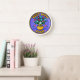This unique, high-quality wall clock is vibrantly printed, protected by a high-impact plexiglass crystal face and features a pre-installed backside hanging slot for easy hanging and a non-ticking design.