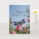 This elegant Mother’s Day card features a striking iridescent dragonfly perched delicately atop a soft pink rosebud, surrounded by a dreamy garden of blurred blooms. The dragonfly’s wings shimmer with hues of blue, violet, and gold, creating a beautiful contrast against the gentle pink tones. With its graceful composition and romantic atmosphere, this design captures the essence of love, beauty, and appreciation on Mother’s Day.