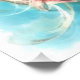 Künstlerisches Porträt einer Frau im aquarellischen Stil mit blauem türkischem Hintergrund. Sie zeigt eine junge Frau mit mittellangen, gewellten und leicht gefärbten Haaren. Sie hat ein elegantes Make-up mit scharfen roten Lippen und rostigen Wangen. Der Gesichtsausdruck ist ruhig und selbstbewusst, mit einem nach oben gerichteten Blick. Die Kunsttechnik schafft eine schöne, träumende Atmosphäre