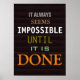 Motivierend Zitate von Kunstplakaten und -drucken - Es scheint immer unmöglich, bis es fertig ist