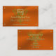 Diese Visitenkartenvorlage ist speziell für einen Personal Motivierend Coach konzipiert - oder Sie können sie in andere Stellenangebote innerhalb des Gesundheits- und Fitness-Berufes umtauschen, um Ihre Bedürfnisse zu Anzug zu bringen. Das Design verwendet ein goldenes Quadrat, um Ihre Initialen zu rahmen, und ein Prägeeffekt-Phönix in Gold, Flügel ausgedehnt, während es steigt. Der Hintergrund verwendet eine motivierende, orangefarbene Farbe mit simuliertem Glanz. Passen Sie sich mit Ihren Geschäftsdetails an und geben Sie ein Band, ein Zitat oder eine persönliche Nachricht, um diesen beruflichen Eindruck zu polieren. Füllen Sie die Rückseite mit Ihrem Namen und Kontaktdaten, um zu vervollständigen.
