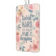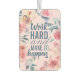 Motivierend inspirierende Worte: hart arbeiten und es geschehen lassen. Motivierend Worte der Weisheit. Wenn du hart arbeitest, egal wie groß deine Träume sind (es wagst, groß zu träumen), wirst du deine Träume wahr werden lassen, das ist die Erfolgsformel. Diese Worte sind auf einem schönen Blush Pink Air Freshener mit einem originalen blumenfarbenen Aquarell rosa Rosen Kranz.
