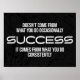 Das Bild zeigt ein motivierend Zitat über den Erfolg, das in fett weißem Text vor einem dunklen, texturierten Hintergrund angezeigt wird. Das Zitat lautet: "Kommt nicht von dem, was du gelegentlich tust. Erfolg. Es kommt von dem, was man konsequent tut." Der Hintergrund ähnelt einer gerissenen oder verwitterten Oberfläche, was ein Gefühl von Tiefe und visuellem Interesse vermittelt.