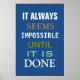 Motivierend Zitate von Kunstplakaten und -drucken - Es scheint immer unmöglich, bis es fertig ist