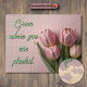 Delikate, rosa Tulpen mit grünen Blätter werden auf einem pastellrosa Hintergrund wunderschön präsentiert und erinnern an Gefühle der Schönheit, Einfachheit und Eleganz der Natur. Ideal für Frühlingsthemen oder Blumendekorationen. Bestelle noch heute.