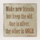Inspirative und motivierend Botschaft über Freunde, die sagt: "Macht neue Freunde, aber behalte die alte. Einer ist Silber, der andere ist Gold." ... Klicken Sie auf den Button "Personalisieren" oder "Design bearbeiten", um Ihren eigenen Text, Ihre eigene Farbe, Ihren Schriftart oder Ihre eigene Größe hinzuzufügen und ein eigenes Geschenk zu erstellen (oder eine besondere Leckerei für sich selbst!). Wie wäre es mit jemandes Namen, einem Geburtstag oder Weihnachtsgrüßen oder einem Ort und einem Datum? ... Oder, wenn Sie gewollt haben, fügen Sie keinen Text hinzu und haben nur das Bild selbst. Piece & Quiet© - Alle Rechte vorbehalten.