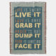 "Das Leben ist kurz - LIVE IT, Liebe ist selten - GRAB IT, Wut ist schlecht - DUMP IT, Angst ist limitierend - FACE IT". Sehen Sie in meinem Laden nach Artikeln mit diesem Design.