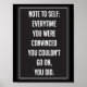 Achtung: Jedes Mal, wenn man überzeugt war, dass man nicht weitermachen konnte, tat man es. Motivierend Poster.