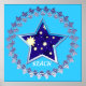 Digital Sapphire blauer Himmelshintergrund mit einem zentralen silbernen Stern gefüllt mit "glitzernden gelben Traumstars", umgeben von zwei silbernen Kreisen von außen erreichten Hände, die sich für "die Sterne" greifen.