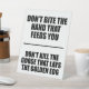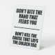 Behalt deinen Schreibtisch scharf mit diesem kühnen motivierend Schild. Mit den klassischen Redewendungen "Biss nicht die Hand, die dich Füttre" und "Töte nicht die Gans, die das goldene Ei lockt" ist es die perfekte Mischung aus Weisheit und Witz für jedes Büro. Großartig wie Dekoration, ein Gesprächsstarter oder ein cleveres Geschenk. Anpassen, um es zu Ihrem eigenen zu machen.