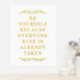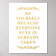 Schöne, elegante und einfache reale Goldfolie motivierend bedruckt sein Sie, weil jeder andere bereits zitiert. Dieses elegante, stilvolle und trendige Goldfolienposter mit einer Vintagen, eleganten und schicken minimalistischen Typografie-Script-Ästhetik ist ein perfektes motivierend, inspirierendes und ermutigendes Geburtstagsgeschenk.