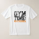 Ein T - Shirt mit dem motivierenden Slogan "Gym Time No Excuses" in schwarz und orange fett formatierter Grunge Text Typografie.