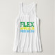 Ein Panzertop mit dem motivierenden Slogan "Flex Appeal In Progress" in farbenfroher Text Typografie.
