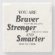 Schwarz-Weiß-Untersetzer mit einem motivierend Zitat: "Du bist mutiger, als du glaubst, stärker, als du scheinst, und klüger, als du denkst."
