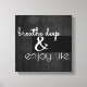 Ein modernes motivierend Zitat gewickelt Wandkunst aus Leinwand hat weißen Text atmen tief & genießen Sie das Leben in modernen Stil Typografie auf Not kohle grau für moderne Dekoration.