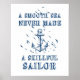 "Ein glattes Meer hat nie einen geschickten Seemann gemacht" Zitat, inspirierendes, motivierend Zitat-Poster mit Ankerzeichen und Möwen in Blau und Weiß.