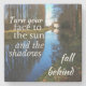 Ein motivierend Zitat-Sprichwort "Schalten Sie Ihr Gesicht zur Sonne und die Schatten fallen zurück". Das ist ein großartiges Geschenk für jemanden, den Sie kennen, der vor einer schwierigen Herausforderung steht.