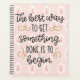"Der beste Weg, etwas zu erreichen, ist, zu beginnen" inspirierendes Zitat auf rosa Hintergrund mit Eiffelturm Muster.