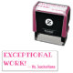Dieses inspirierend Design aus Gummi-Briefmarke beinhaltet die inspirierende Nachricht "EXCEPTIONAL WORK!" und einen benutzerdefinierten Tutor-Namen. Es könnte von einem Lehrer oder Erzieher verwendet werden, wenn sie Aufgaben markieren, um anzuerkennen, dass der Schüler eine großartige Arbeit geleistet hat.
