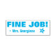 Dieses lustige Design aus Gummi Briefmarke beinhaltet die Nachricht "FINE JOB!" und einen personalisierten Lehrernamen. Es ist auch mit einer dekorativen Sterne-Kontur gestaltet. Es könnte von einem Lehrer, Pädagogen oder Tutor genutzt werden, um anzuerkennen, dass ein Schüler eine außergewöhnliche Arbeit geleistet hat.