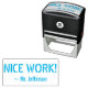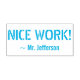 Dieses lustige Design aus Gummi-Briefmarke beinhaltet die Nachricht "NICE WORK!" und den Namen eines angepassten Pädagogen. Es könnte von einem Lehrer, Pädagogen oder Tutor verwendet werden, um zu bestätigen, dass der Schüler gut abgeschnitten hat.