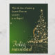 Motivo de Navidad verde con árbol de Navidad hecho de estrellas doradas con las palabras Feliz Navidad en alemán, en español, en francés, en inglés El texto se puede cambiar. Líneas para la escritura de texto escrito a mano en la parte posterior.