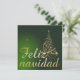 Motivo de Navidad verde con árbol de Navidad hecho de estrellas doradas con las palabras Feliz Navidad en alemán, en español, en francés, en inglés on horizontal Einladung / Flachkarte