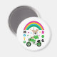 Ein niedlicher Hund auf einem Motorrad, umgeben von einem bunten Regenbogen und Sternen, Kinderdesign