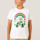 Ein niedlicher Hund auf einem Motorrad, umgeben von einem bunten Regenbogen und Sternen, Kinderdesign