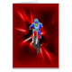 Motocroßreiter auf Rot mit gelben Strahlen