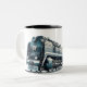 Motor der russischen Eisenbahn durch Schnee Zweifarbige Tasse