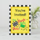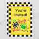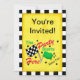 Diese Einladung ist für ein laufendes Party, Sitzung oder anderes Bewegungslaufendes Ereignis groß. Die Einladung hat eine karierte Schwarzweiss-Grenze und die kundengerechten Wörter "Sie werden! eingeladen". Das grafische Bild umfaßt die Wörter, ", welches das Party hier" und "Fan des Rennens NO1" mit einer checkered Schwarzweiss-Flagge und einer grünen Flagge beginnt. Die andere Seite der Einladung hat für Ihr Ereignis besonders anzufertigen die Felder. Zwei Schwarzweiss-Zielflaggen werden auf dieser Seite zusammen mit der gleichen karierten Schwarzweiss-Grenze gekennzeichnet. Der Hintergrund auf jeder Seite der Einladung ist strukturiertes Gelb. Fertigen Sie völlig besonders an, um für Ihr Ereignis zu personifizieren.