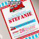 Schall den Alarm! Feiern Sie Ihren blauen Motor Pärchen Babydusche mit unserer Fire Motor Party Einladung. Die Babydusche aus Rot und Schwarz-Motor ist mit einem roten Feuerwehrwagen mit roten Streifen ausgestattet. Ideal für Kamin-LKW-Paare Babydusche Party, Motor Babydusche Party oder Feuerwehrwagen Baby Dusche Party.