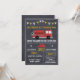 Die Geburtstagsfeier dieses Jungen mit Chalkboard ist mit einem niedlichen Motor und einer Kappe des Feuerwehrmanns auf einem gescannten Chalkboard-Hintergrund ausgestattet. Das Design umfasst auch eine weiße und gelbe bunting Fahne und einige dekorative Elemente wie Sterne, Banner und Trennwände. Das Design wird von der Schalkpappkunst und Schablonenkunst beeinflusst und eignet sich besonders für eine Motor-Geburtstagsparty. Es ist für dich bereit, dich zu personalisieren.
