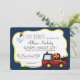Chubby-Feuerwehrauto und dekorativer Kaminrahmen zum Feiern des Babys mit dieser lustigen und farbenfrohen Baby-Dusche-Einladung. Personalisieren Sie Text wie gewünscht und Raum für Registrierungsinformationen auf der Rückseite. Wählen Sie die gewünschte Hintergrundfarbe aus.